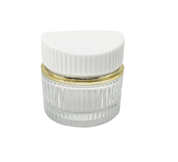 Элегантная стеклянная баночка с рифлёной поверхностью, которая придаёт изделию уникальность и премиальный характер.