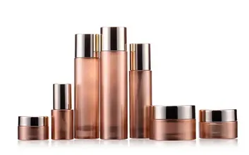 Флакон 50 мл стекло окрашенный в комплекте с дозатором алюминиевым и золотой крышкой